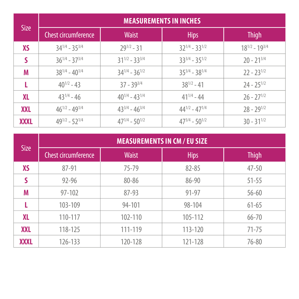 • Full-Body Support: Sleeveless bodysuit design with legs extending to the upper thighs for comprehensive coverage.