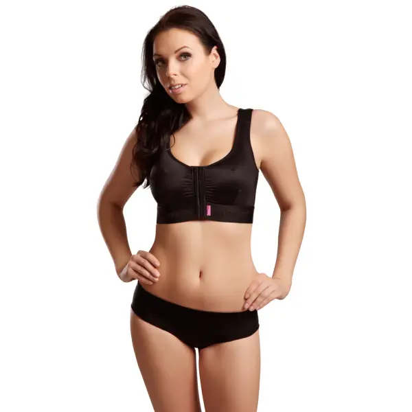 - Individuals looking for a compression bra that accommodates implants inserted through the breast crease.