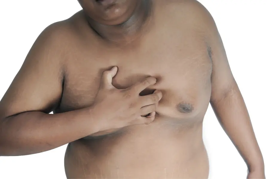 In contrast, chest enlargement caused by excess body fat — known as pseudogynecomastia — tends to appear as a more general increase in chest size rather than a defined lump.